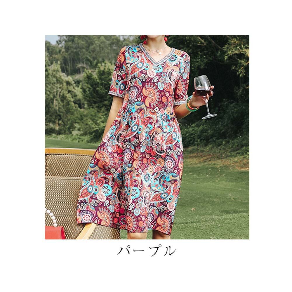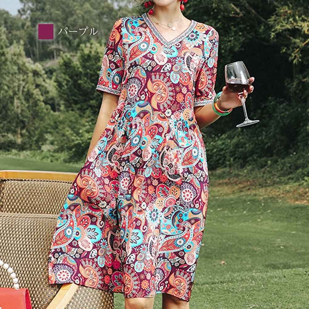 【即納&送料無料】 エスニック柄Ⅴネックワンピース ワンピース半袖 レディース tpsw-plus87