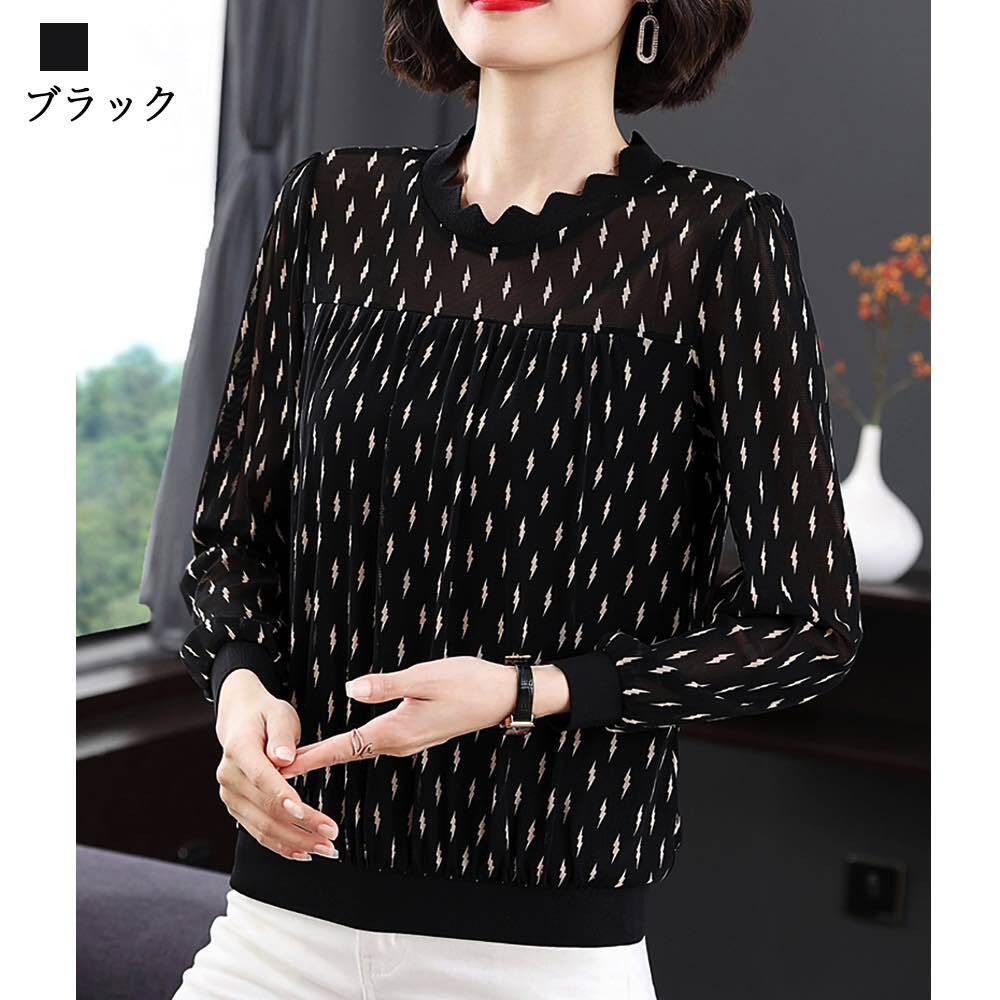 【即納&送料無料】 総柄シアーブラウス ブラウス長袖 レディース lit-459