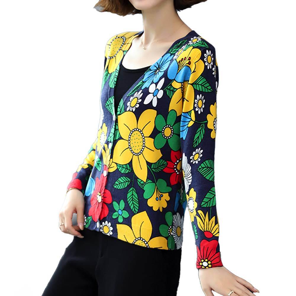 カラフル花柄カーディガン