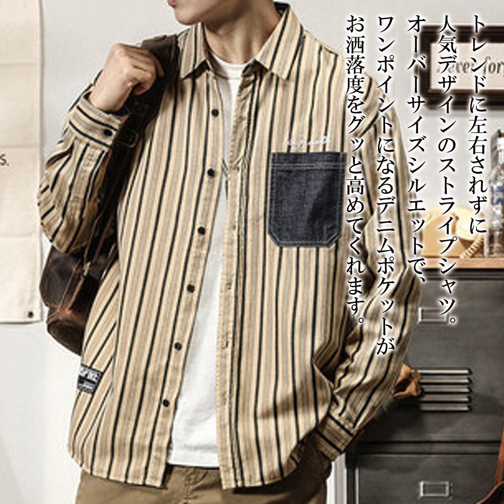 【即納&送料無料】 デニムポケットストライプシャツ カジュアルシャツ長袖 メンズ litm-186