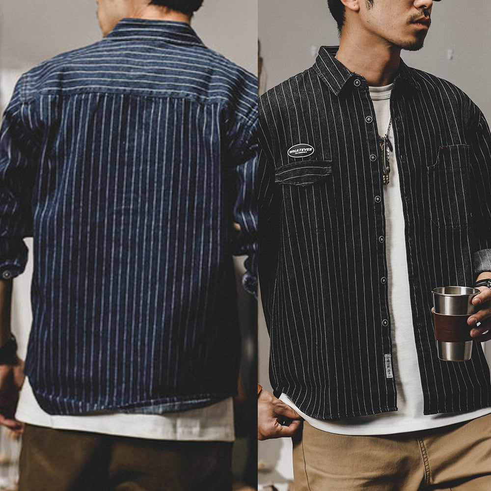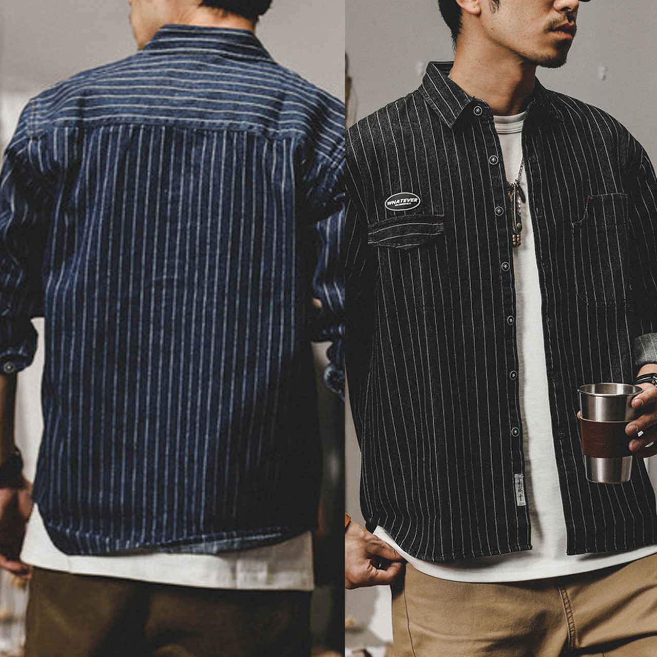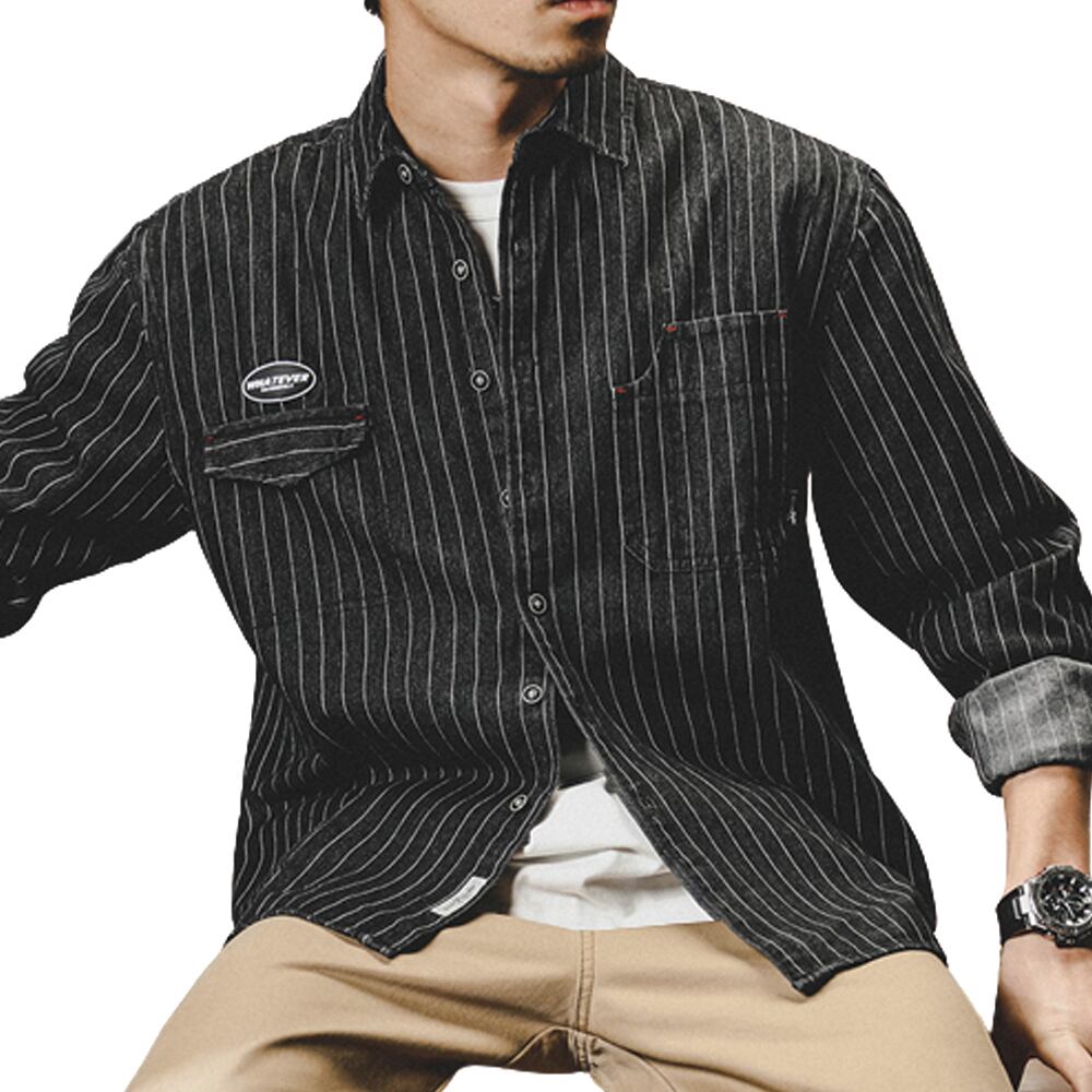 【即納&送料無料】 ストライプデニムシャツ カジュアルシャツ長袖 メンズ litm-187