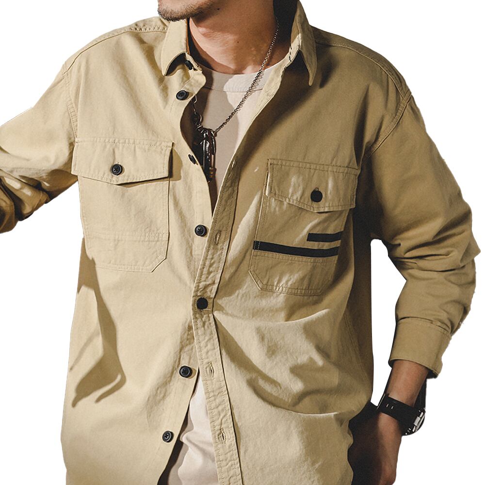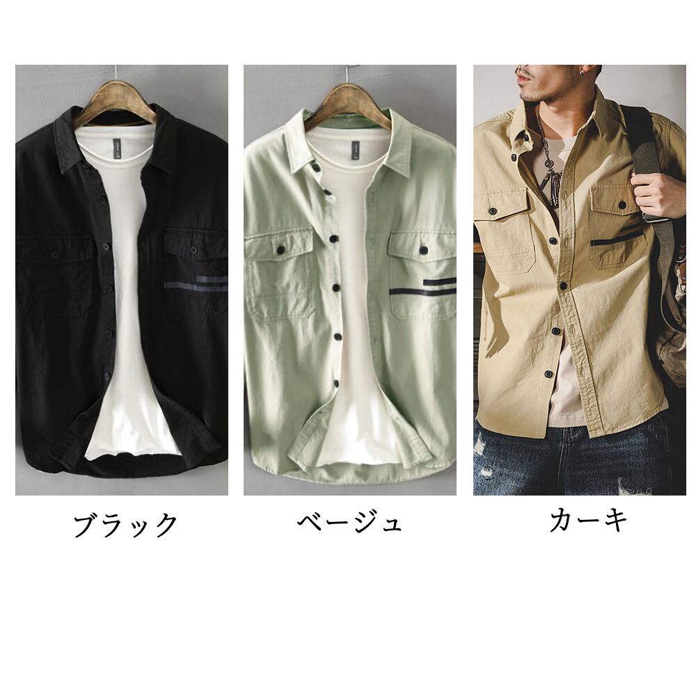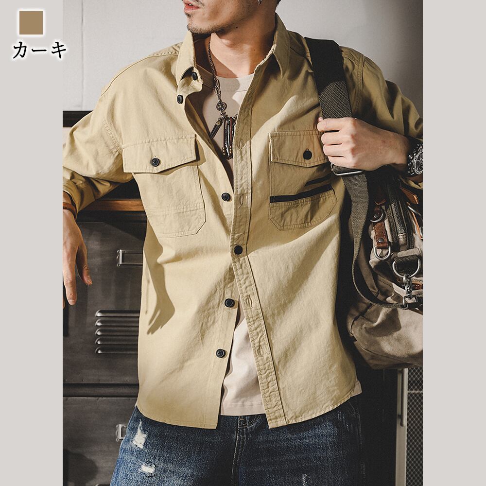 【即納&送料無料】 2ポケットミリタリーシャツ カジュアルシャツ長袖 メンズ litm-202
