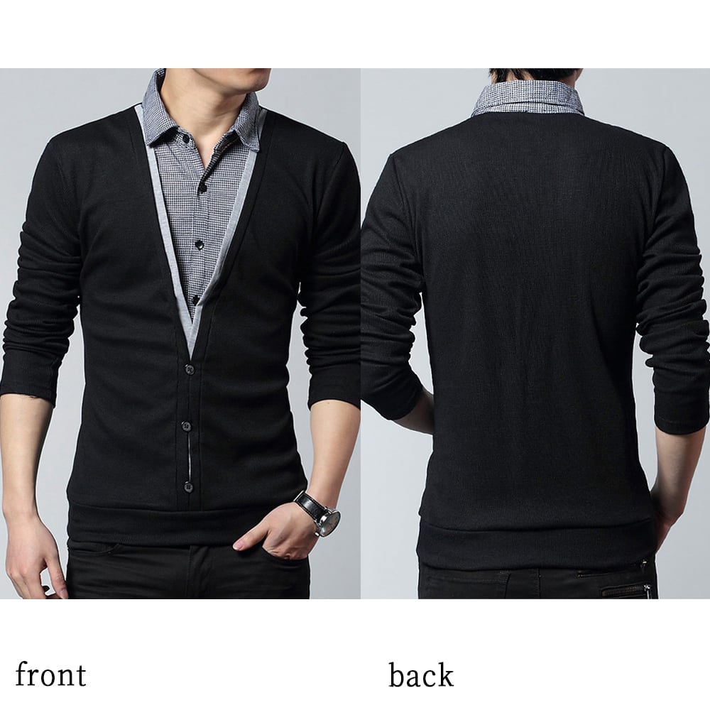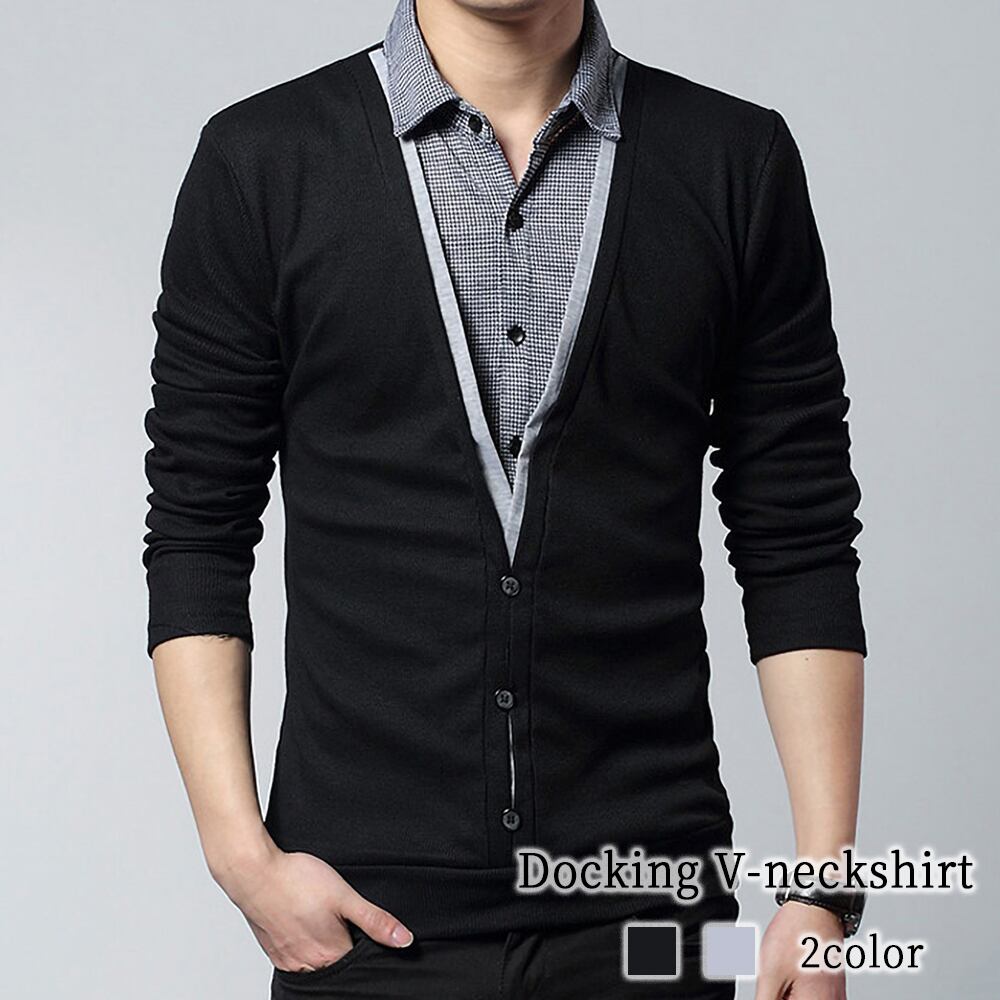 【即納&送料無料】 ドッキングVネックシャツ カジュアルシャツ長袖 メンズ litm-213